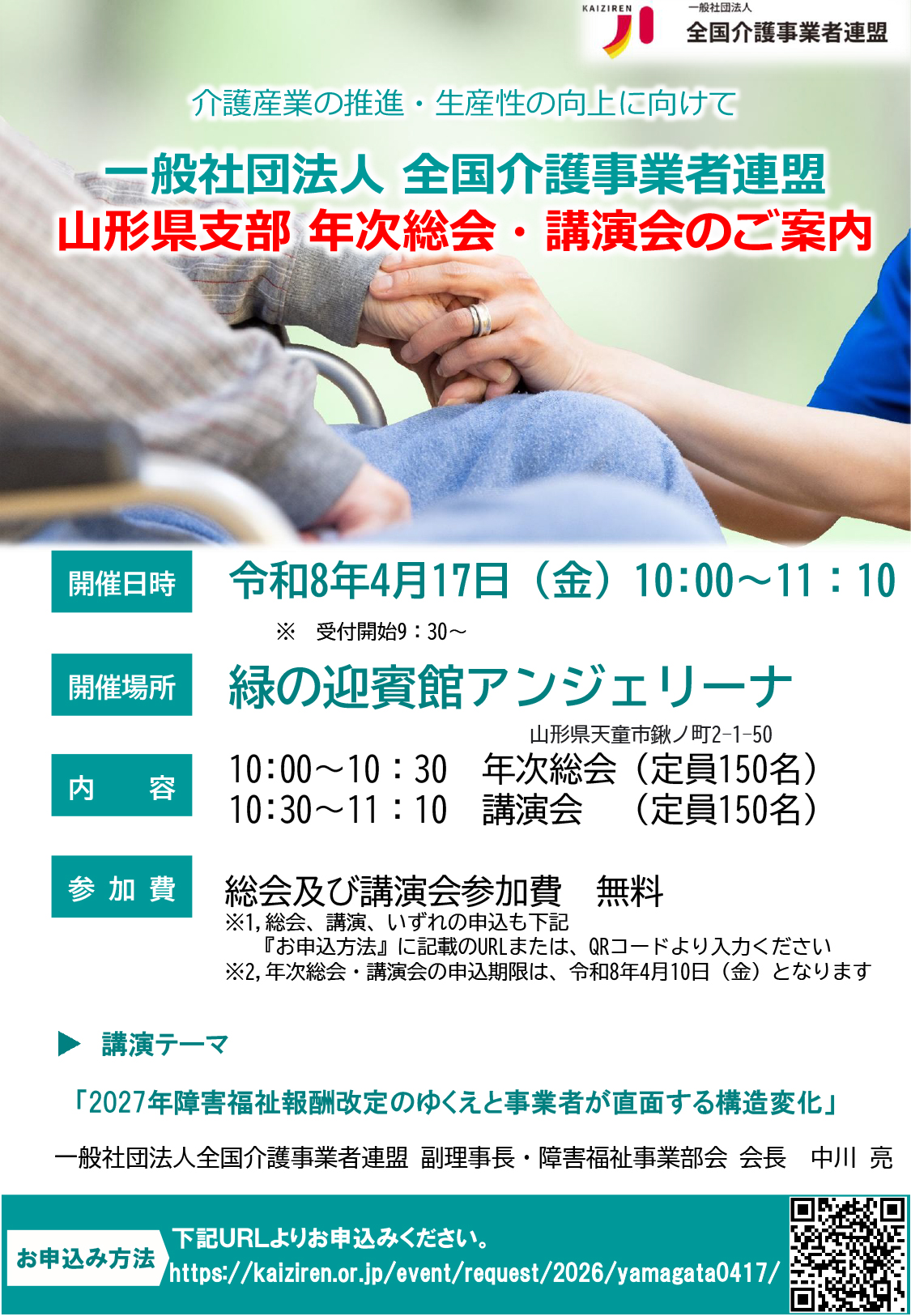 | 開催日時 | 令和8年4月17日(金)10:00~11:10(受付 9:30〜) 年次総会 10:00~10:30 講演会 10:30~11:10 |